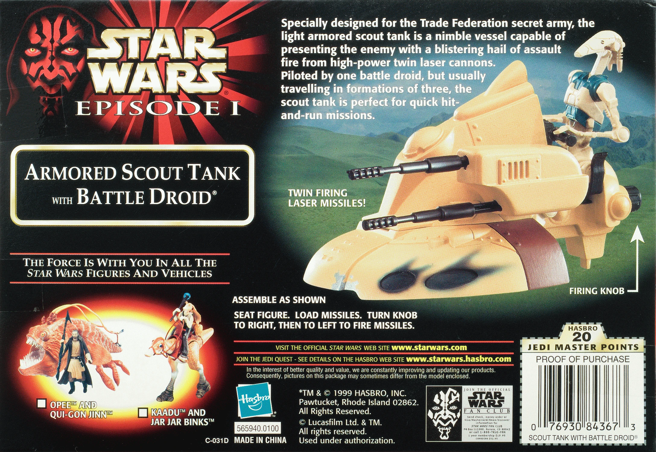 Armored Scout Tank with Battle Droid was a vehicle released in 1999 as a part of the Episode I collection.