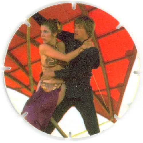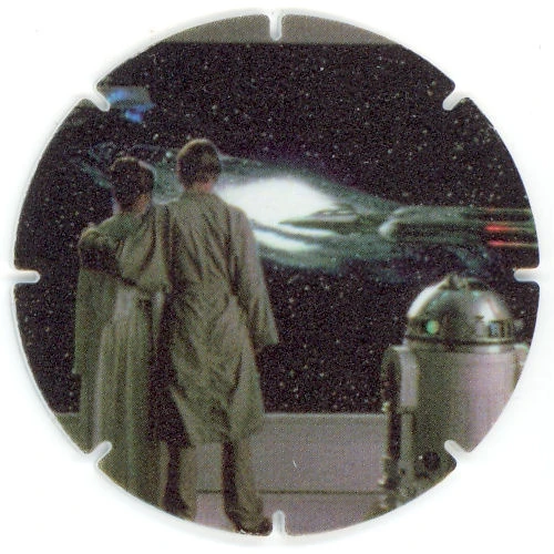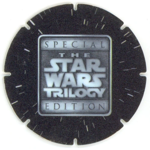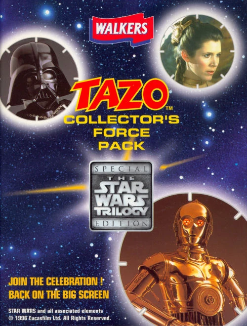 Star Wars Tazos were a limited edition series of Tazos distributed in the UK with packets of Walkers crisps. They were released in 1997 to mark the release of Star Wars Trilogy (Special Edition). There were fifty to collect, and a special binder called the Collector's Force Pack was available to store them in. Numbers 1-39 covered the three individual films, with thirteen Tazos for each film. Numbers 40-50 were only available in packets of Doritos and depicted moments from the remastered trilogy.
